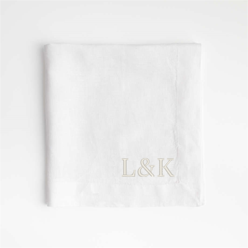In stock and ready to ship Loading...Crate & BarrelSKU 544044Personalized Marin White EUROPEAN FLAX ™-Certified Linen Napkin, Set of 4$74.80includes $15 personalization feeShips free0 of 2 purchasedAdd to Cart