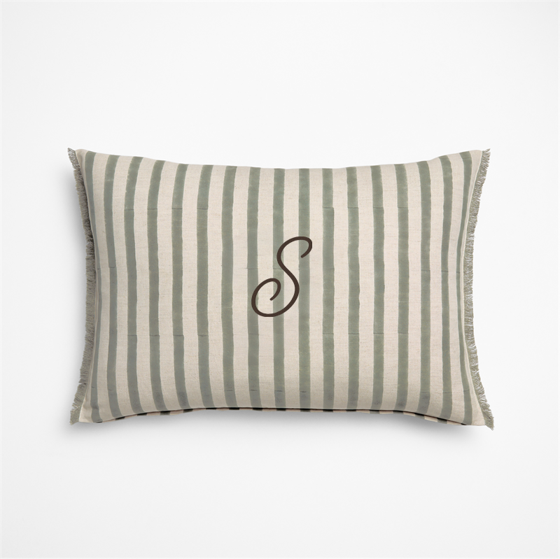 In stock and ready to ship Loading...Crate & BarrelSKU 470621Personalized Yarra Stripe Fringe 24"x16" Shadow Sage Green Throw Pillow with Feather InsertSale $88.96 reg. $109.95includes $15 personalization feeShips free0 of 1 purchasedAdd to Cart