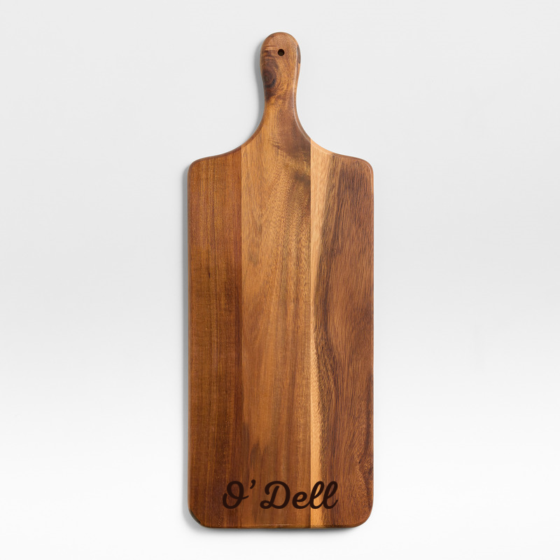 In stock and ready to ship Loading...Crate & BarrelSKU 103327Personalized Tondo Acacia Paddle Serving Board$64.95includes $15 personalization feeFree Shipping Eligible0 of 1 purchasedAdd to Cart