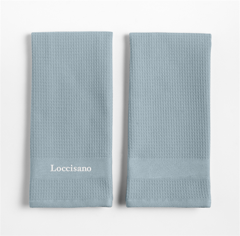In stock and ready to ship Loading...Crate & BarrelSKU 427234Personalized Waffle Terry Harbor Blue Organic Cotton Kitchen Dish Towels, Set of 2$37.95includes $15 personalization feeFree Shipping Eligible0 of 1 purchasedAdd to Cart