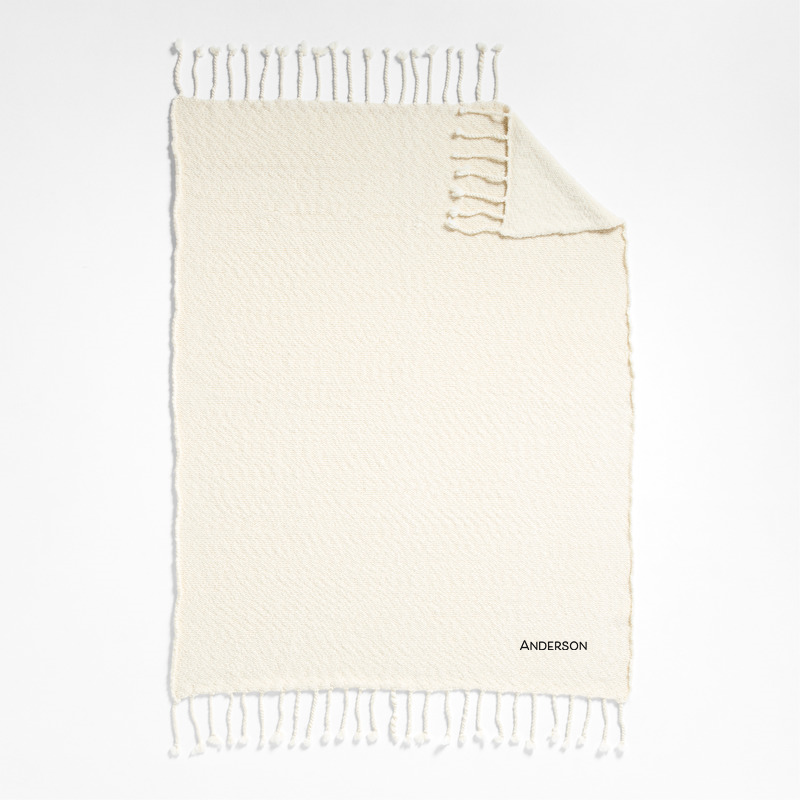 Purchase now and we'll ship when it's available. Estimated in late February 2026.Loading...Crate & BarrelSKU 236842Personalized Chunky Wool Fringe Knit 70"x55" Travertine Beige Throw BlanketClearance $104.97 reg. $184.95includes $15 personalization feeShips free0 of 1 purchasedAdd to Cart