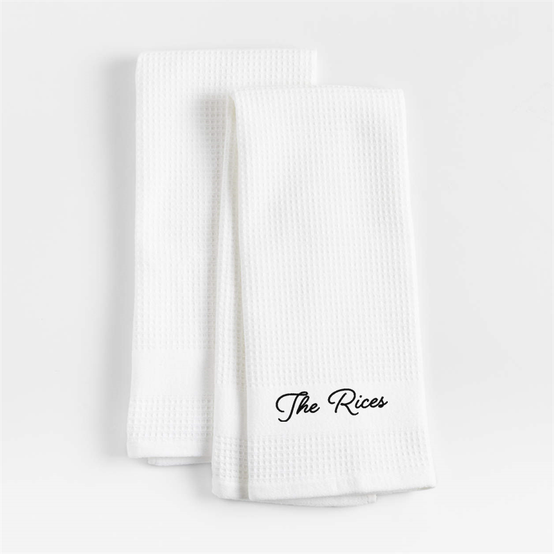 In stock and ready to ship Loading...Crate & BarrelSKU 493386Personalized Waffle-Terry White Organic Cotton Kitchen Towels, Set of 2$37.95includes $15 personalization feeFree Shipping Eligible0 of 2 purchasedAdd to Cart