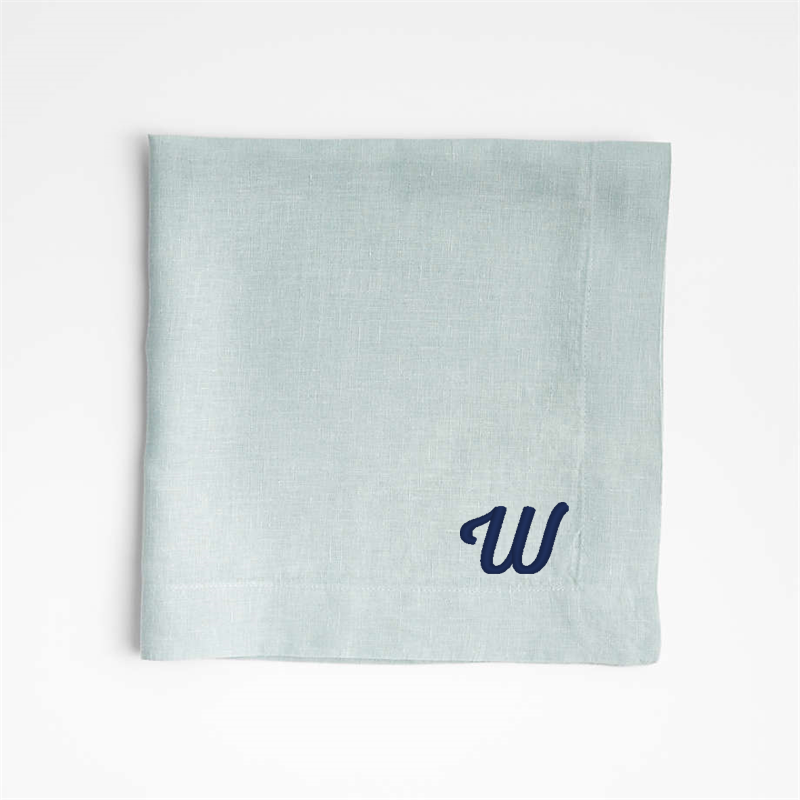 In stock and ready to ship Loading...Crate & BarrelSKU 544408Personalized Marin Quiet Blue EUROPEAN FLAX ™-Certified Linen Napkin, Set of 8$149.60includes $30 personalization feeShips free0 of 1 purchasedAdd to Cart