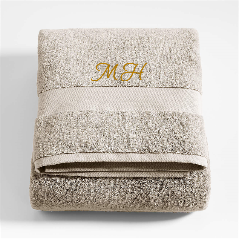 In stock and ready to ship Loading...Crate & BarrelSKU 218012Personalized Organic Turkish Cotton Taupe Bath Sheet$74.95includes $15 personalization feeShips free0 of 2 purchasedAdd to Cart