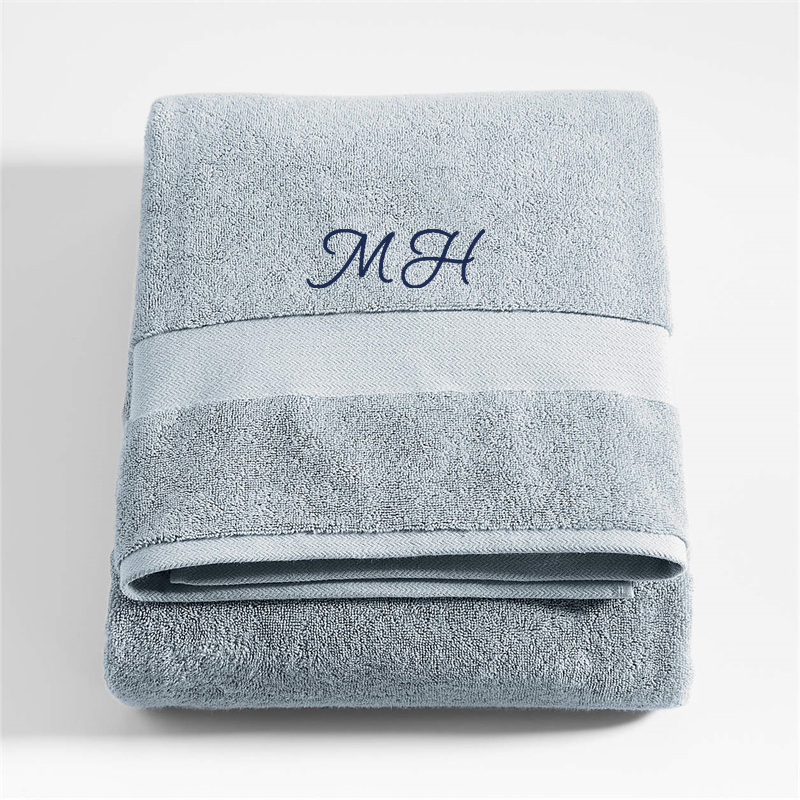 In stock and ready to ship Loading...Crate & BarrelSKU 322106Personalized Organic Turkish Cotton Evening Blue Bath Sheet$74.95includes $15 personalization feeShips free0 of 2 purchasedAdd to Cart