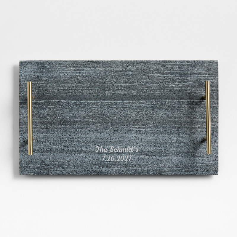 In stock and ready to ship Loading...Crate & BarrelSKU 440999Personalized Hayes Marble Serving Board with Handles$84.95includes $15 personalization feeFree Shipping Eligible0 of 1 purchasedAdd to Cart