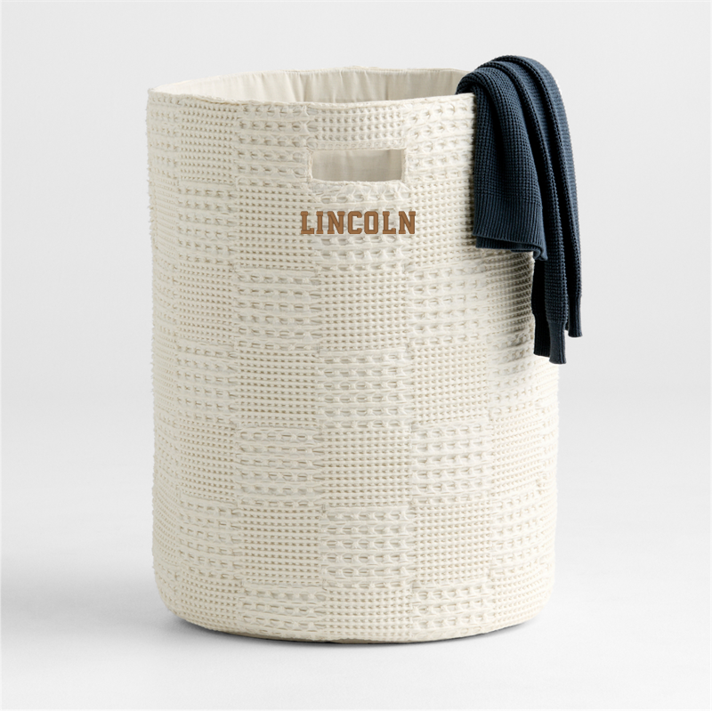 This item is in high demand and may take longer than usual to arrive. Estimated in mid July 2026.Loading...Crate & KidsSKU 411231Personalized Nella Cream Organic Cotton Waffle Weave Kids Hamper with Handles$104.00includes $15 personalization feeFree Shipping Eligible0 of 1 purchasedAdd to Cart