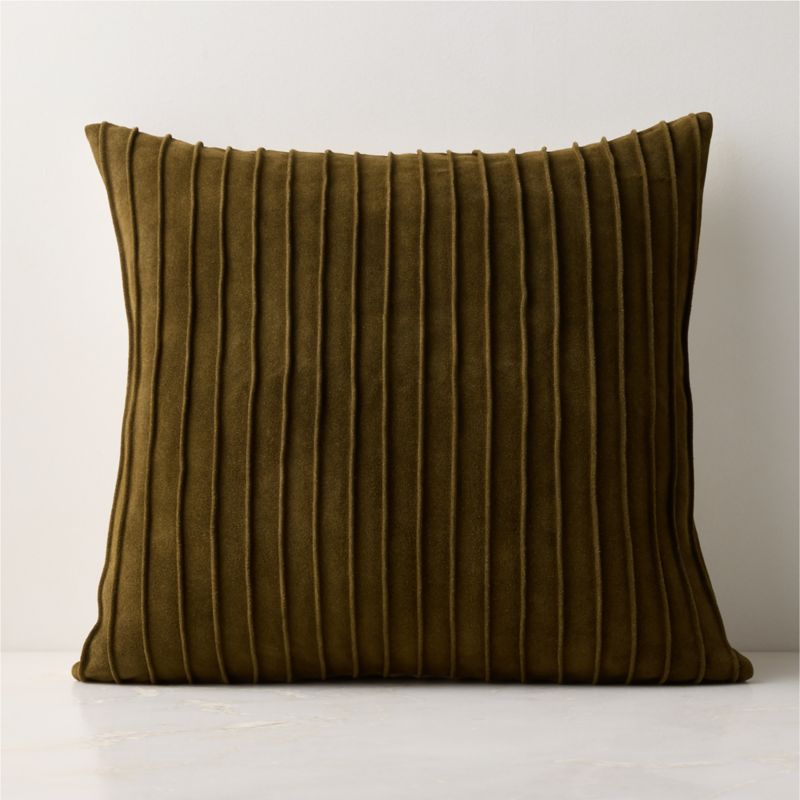 See in-stock & shipping info on CB2 Loading...CB2SKU 657539Gathered Olive Green Suede Throw Pillow with Down-Alternative Insert 20"x20"$119.950 of 2 purchasedBuy on CB2