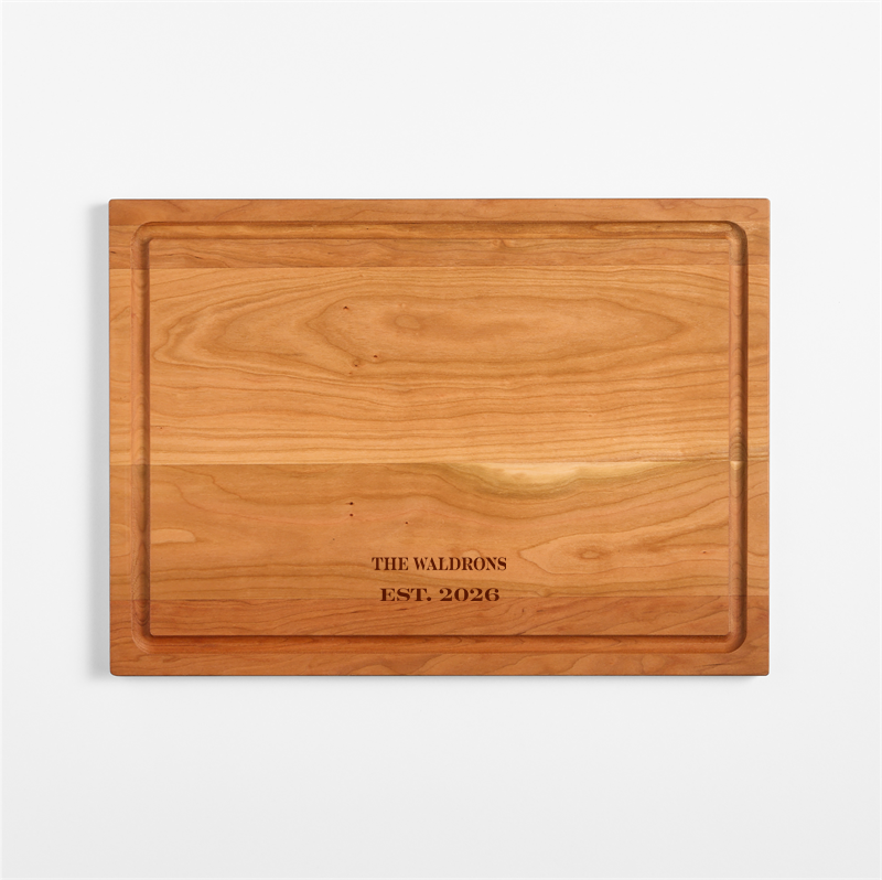 In stock and ready to ship. Loading...Crate & BarrelSKU 462842Personalized Crate & Barrel Reversible Cherry Wood Cutting Board 20"x15"x0.75"$114.95includes $15 personalization feeShips free0 of 1 purchasedAdd to Cart