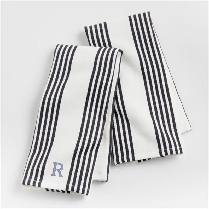 In stock and ready to ship Loading...Crate & BarrelSKU 464002Personalized Cuisine White with Black Stripe Organic Cotton Dish Towels, Set of 2$37.95includes $15 personalization feeFree Shipping Eligible0 of 1 purchasedAdd to Cart