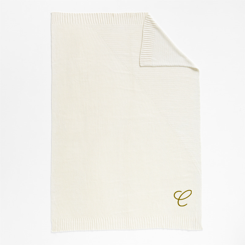 In stock and ready to ship Loading...Crate & BarrelSKU 577204Personalized Sweater Knit 70"x55" Cream White Throw Blanket$134.95includes $15 personalization feeShips free0 of 1 purchasedAdd to Cart