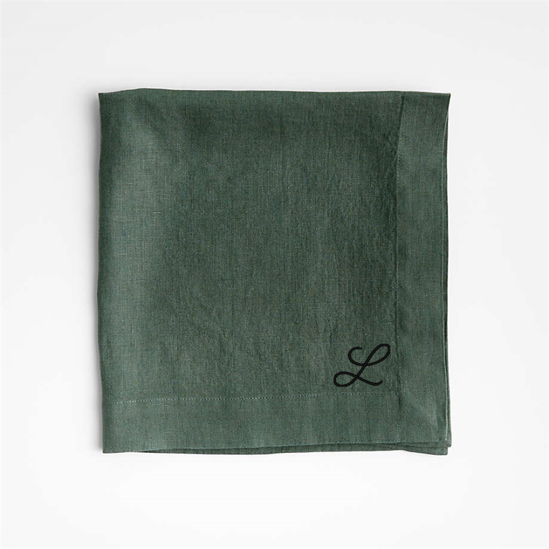 In stock and ready to ship Loading...Crate & BarrelSKU 543892Personalized Marin Pine Green EUROPEAN FLAX ™-Certified Linen Napkin, Set of 4$74.80includes $15 personalization feeFree Shipping Eligible0 of 2 purchasedAdd to Cart