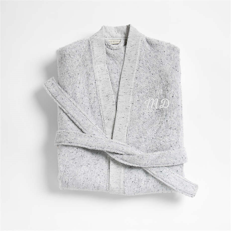In stock and ready to ship Loading...Crate & BarrelSKU 424231Personalized Organic Small/Medium Turkish Cotton Grey Fleck Bathrobe$134.95includes $15 personalization feeShips free0 of 1 purchasedAdd to Cart