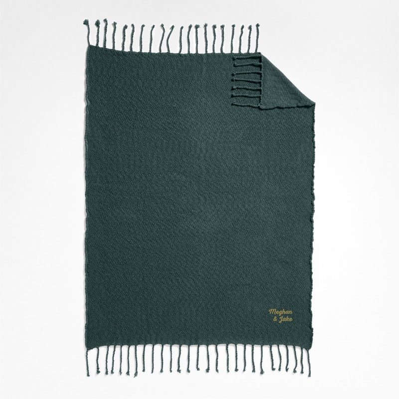 In stock and ready to ship Loading...Crate & BarrelSKU 236879Personalized Chunky Wool Fringe Knit 70"x55" Spruce Green Throw BlanketClearance $84.97 reg. $184.95includes $15 personalization feeShips free0 of 1 purchasedAdd to Cart