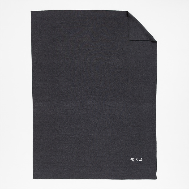 In stock and ready to ship Loading...Crate & BarrelSKU 235552Personalized Calda Chantilly 70"x55" Black Throw Blanket$114.95includes $15 personalization feeShips free0 of 1 purchasedAdd to Cart