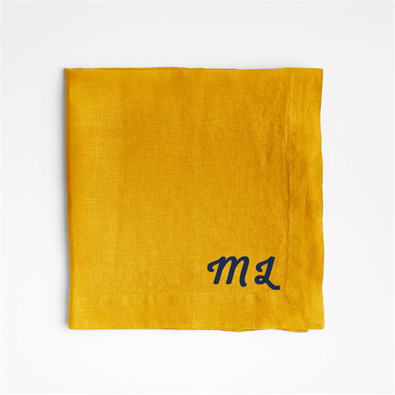 No longer available online. Loading...Crate & BarrelSKU 543952Personalized Marin Saffron Yellow EUROPEAN FLAX ™-Certified Linen Napkin, Set of 4Clearance $35.88 reg. $58.95includes $16 personalization feeEnds Today! Free Ship Over $990 of 1 purchasedAdd to Cart