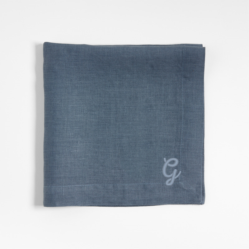 In stock and ready to ship Loading...Crate & BarrelSKU 374424Personalized Marin Slate Blue EUROPEAN FLAX ™-Certified Linen Napkin, Set of 8$149.60includes $30 personalization feeFree Shipping Eligible0 of 1 purchasedAdd to Cart