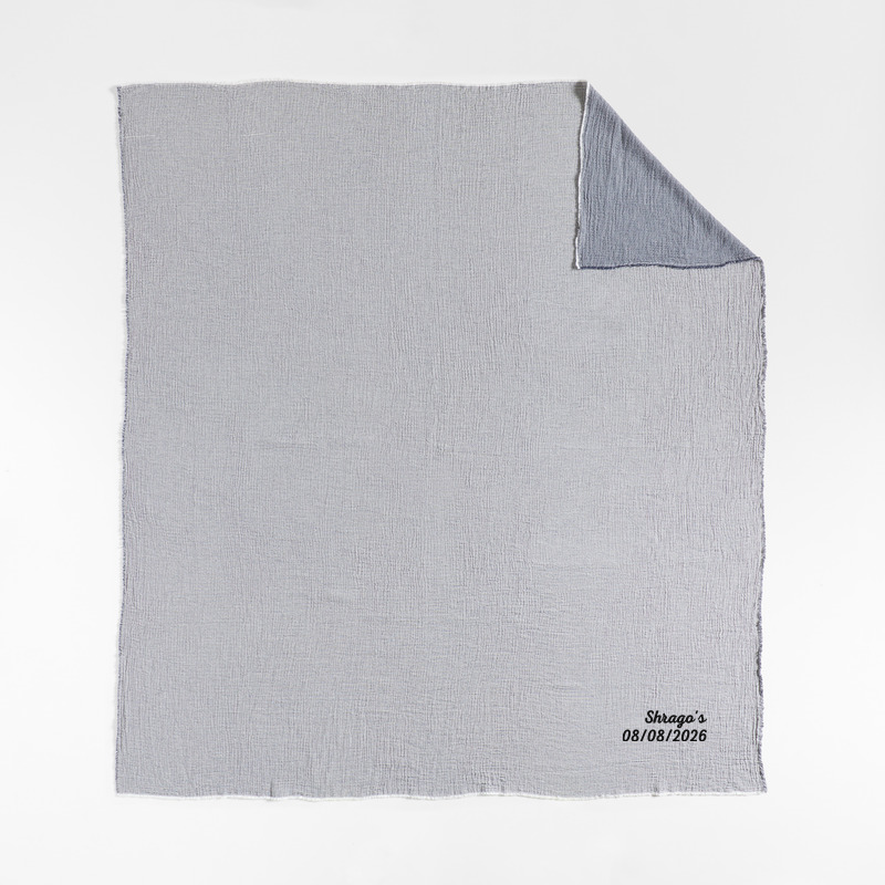 In stock and ready to ship Loading...Crate & BarrelSKU 575352Personalized Reversible Stripe Gauze 80"x80" Deep Indigo Blue and Arctic Ivory Bed Blanket$144.95includes $15 personalization feeShips free0 of 1 purchasedAdd to Cart