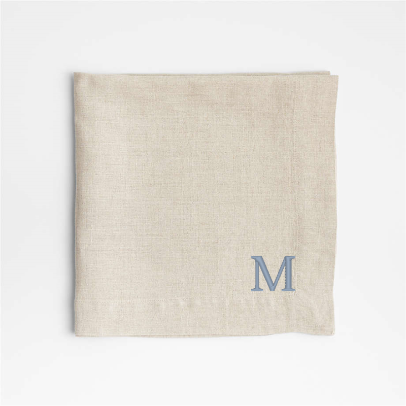 In stock and ready to ship Loading...Crate & BarrelSKU 543868Personalized Marin Natural EUROPEAN FLAX ™-Certified Linen Napkin, Set of 4$74.80includes $15 personalization feeShips free0 of 1 purchasedAdd to Cart