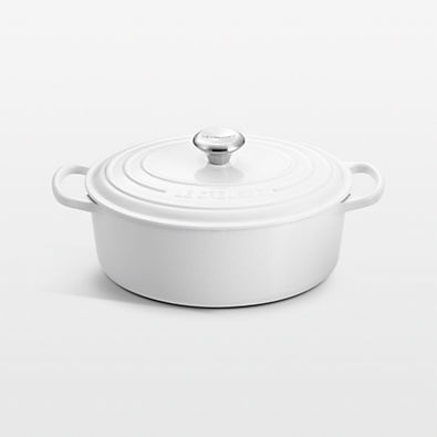 In stock and ready to ship Loading...Crate & BarrelSKU 227272Le Creuset ® Signature White 5-Qt. Enameled Cast Iron Oval Dutch Oven$414.95Ships free0 of 1 purchasedAdd to Cart
