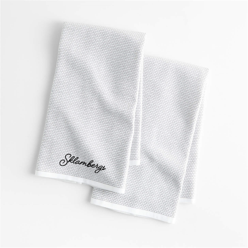 In stock and ready to ship Loading...Crate & BarrelSKU 271294Personalized Textured Terry Alloy Grey Organic Cotton Kitchen Towels, Set of 2$37.95includes $15 personalization feeFree Shipping Eligible0 of 1 purchasedAdd to Cart