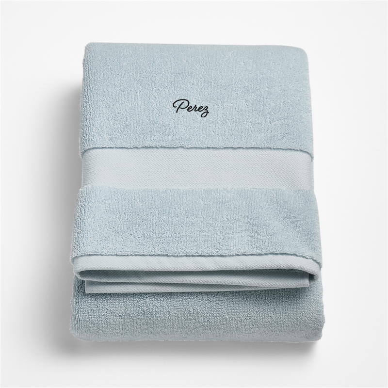 In stock and ready to ship Loading...Crate & BarrelSKU 381003Personalized Organic Turkish Cotton Pale Blue Bath Towel$49.95includes $15 personalization feeShips free0 of 1 purchasedAdd to Cart