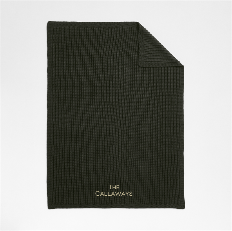 In stock and ready to ship Loading...Crate & BarrelSKU 374118Personalized Ficus Green Wool Blend 70''x55" Fisherman Knit Throw Blanket$184.95includes $15 personalization feeShips free0 of 1 purchasedAdd to Cart