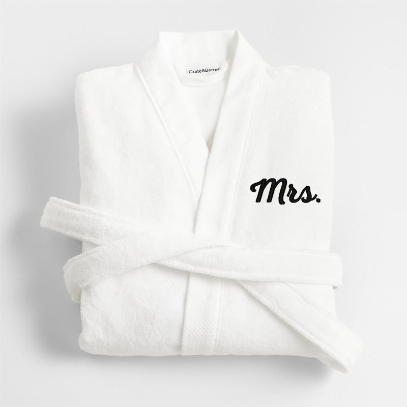 In stock and ready to ship Loading...Crate & BarrelSKU 569603Personalized Organic Turkish Cotton Crisp White Bath Robe S/M$114.95includes $15 personalization feeFree Shipping Eligible0 of 1 purchasedAdd to Cart