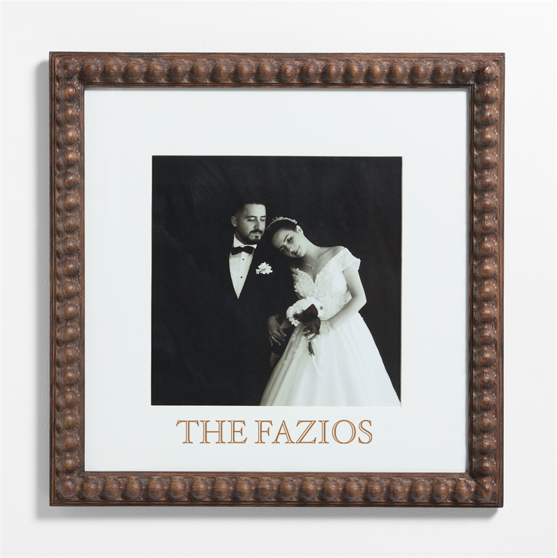 Purchase now and we'll ship when it's available. Estimated in mid May 2026.Loading...Crate & BarrelSKU 292579Personalized Elmhurst Beaded Walnut Wood 11x11 Wall Picture Frame with Interchangeable Mats$174.00includes $15 personalization feeFree Shipping Eligible0 of 1 purchasedAdd to Cart