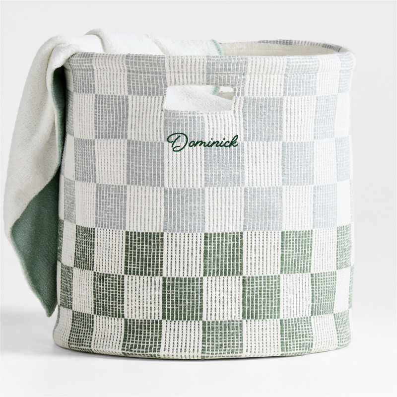 In stock and ready to ship Loading...Crate & KidsSKU 358008Personalized Hopscotch Mist Blue and Pine Green Checkerboard Large Floor Storage Bin$89.00includes $15 personalization feeFree Shipping Eligible0 of 1 purchasedAdd to Cart