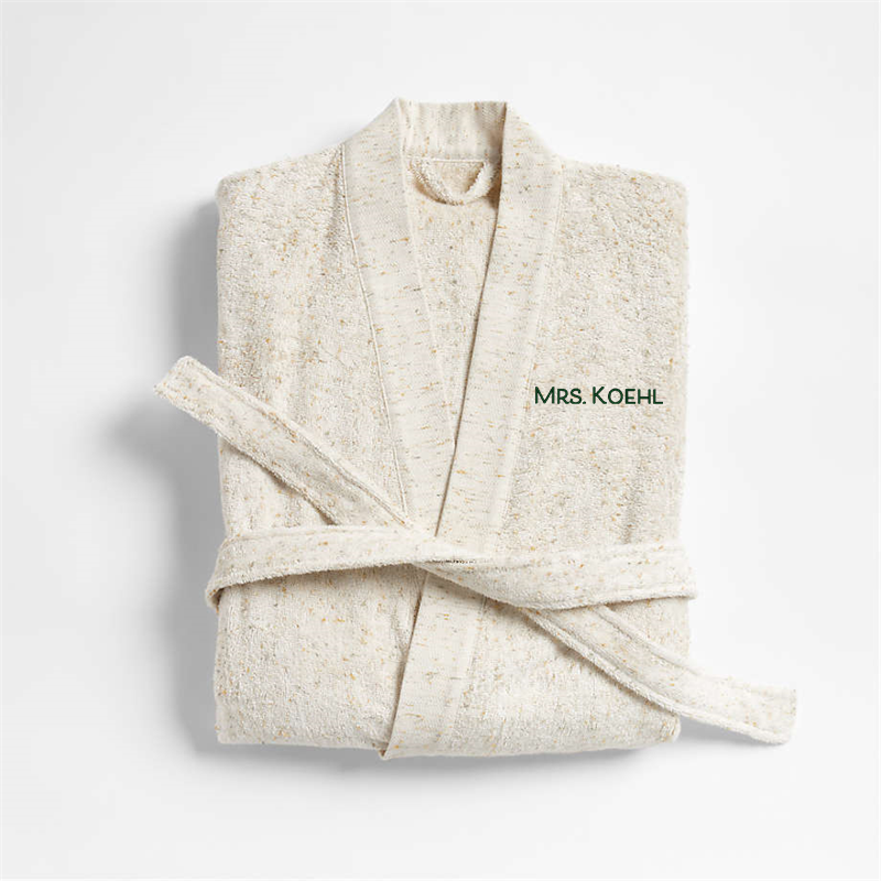 This item is in high demand and may take longer than usual to arrive. Estimated in mid July 2026.Loading...Crate & BarrelSKU 424220Personalized Organic Large/Extra-Large Turkish Natural Beige Fleck Bathrobe$134.95includes $15 personalization feeShips free0 of 1 purchasedAdd to Cart