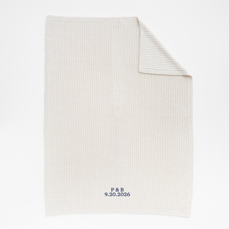 In stock and ready to ship Loading...Crate & BarrelSKU 540858Personalized Arctic Ivory Wool Blend 70''x55" Fisherman Knit Throw Blanket$184.95includes $15 personalization feeShips free0 of 1 purchasedAdd to Cart