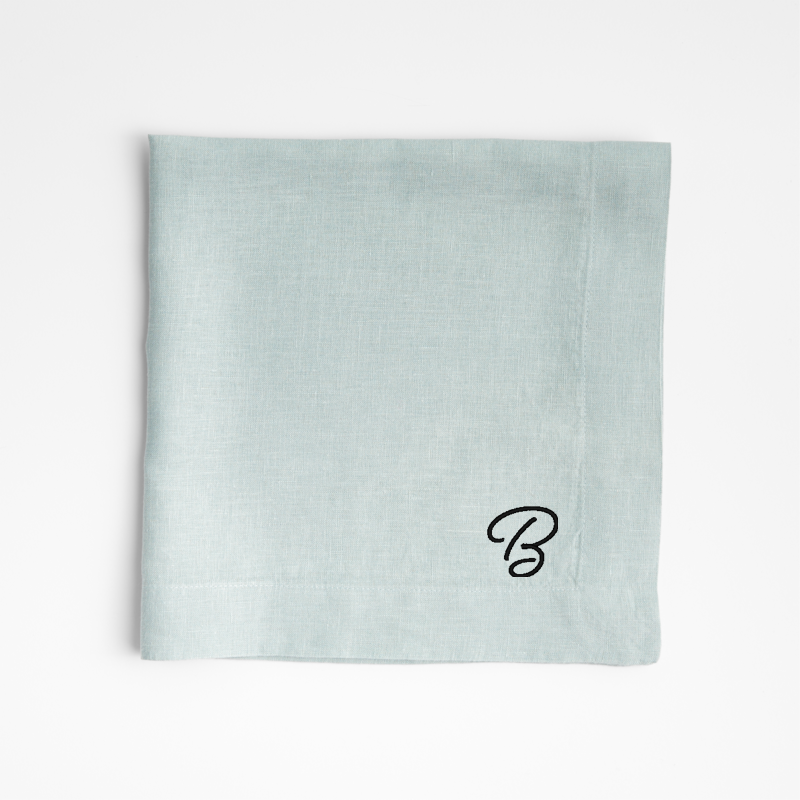 In stock and ready to ship Loading...Crate & BarrelSKU 223554Personalized Marin Quiet Blue EUROPEAN FLAX ™-Certified Linen Napkin$29.95includes $15 personalization feeShips free0 of 2 purchasedAdd to Cart