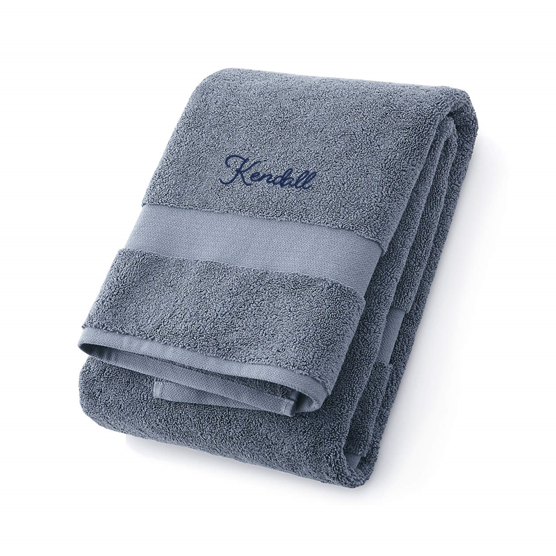 In stock and ready to ship Loading...Crate & BarrelSKU 322079Personalized Organic Turkish Cotton Evening Blue Bath Towel$49.95includes $15 personalization feeShips free0 of 2 purchasedAdd to Cart