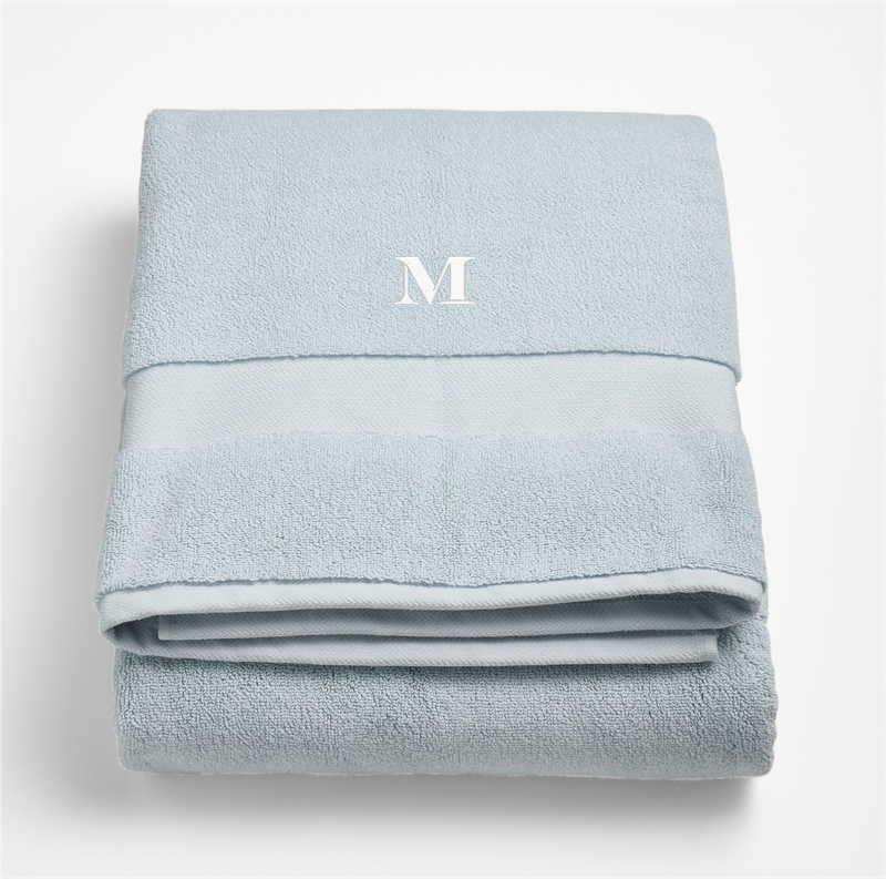 In stock and ready to ship Loading...Crate & BarrelSKU 381024Personalized Organic Turkish Cotton Pale Blue Bath Sheet$74.94includes $15 personalization feeShips free0 of 4 purchasedAdd to Cart