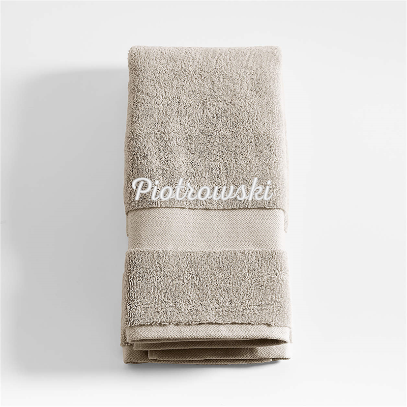 In stock and ready to ship Loading...Crate & BarrelSKU 218135Personalized Organic Turkish Cotton Taupe Hand Towel$39.95includes $15 personalization feeShips free0 of 1 purchasedAdd to Cart
