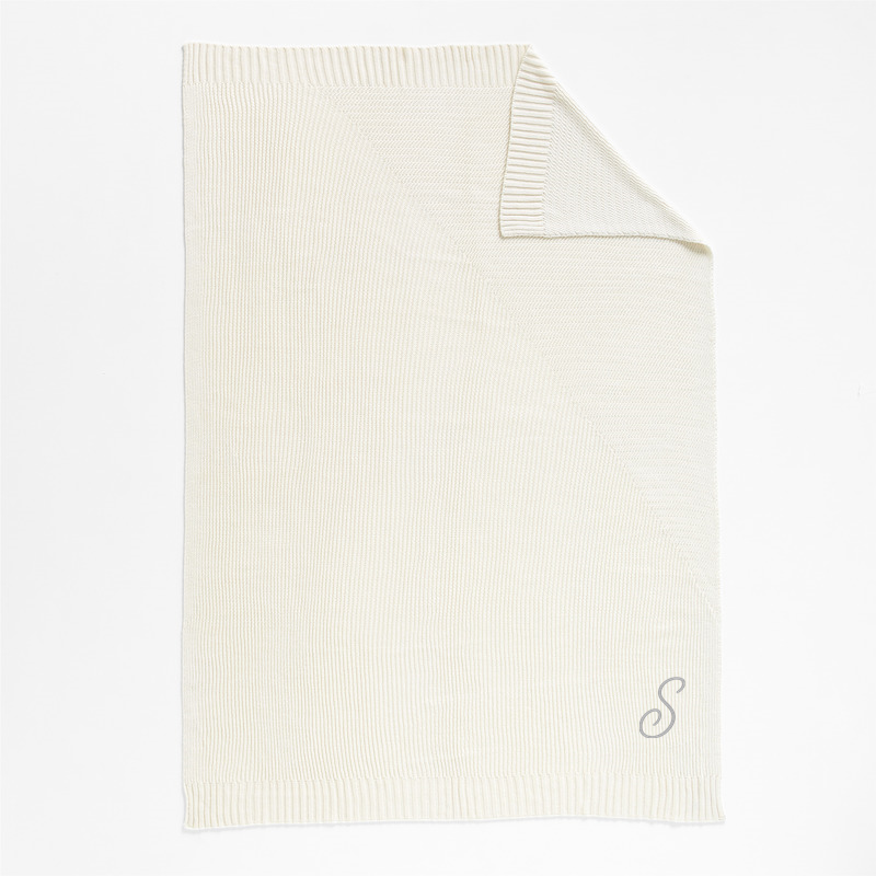 In stock and ready to ship Loading...Crate & BarrelSKU 577204Personalized Sweater Knit 70"x55" Cream White Throw Blanket$134.95includes $15 personalization feeShips free0 of 1 purchasedAdd to Cart