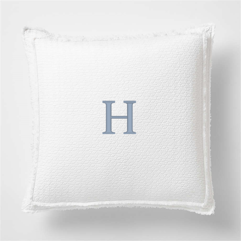 In stock and ready to ship Loading...Crate & BarrelSKU 322771Personalized Organic Cotton White Eyelash Fringe Euro Sham$65.95includes $16 personalization feeFree Shipping Eligible0 of 1 purchasedAdd to Cart
