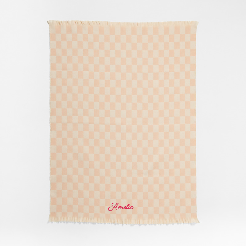 In stock and ready to ship Loading...Crate & KidsSKU 391813Personalized Dusty Blush Checkmate Baby Stroller Blanket by Leanne Ford$69.95includes $15 personalization feeShips free0 of 1 purchasedAdd to Cart