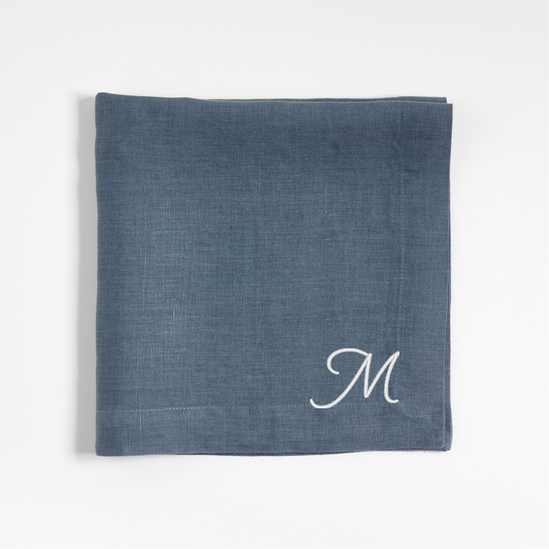 In stock and ready to ship Loading...Crate & BarrelSKU 374274Personalized Marin Slate Blue EUROPEAN FLAX ™-Certified Linen Napkins, Set of 4$74.80includes $15 personalization feeShips free0 of 3 purchasedAdd to Cart