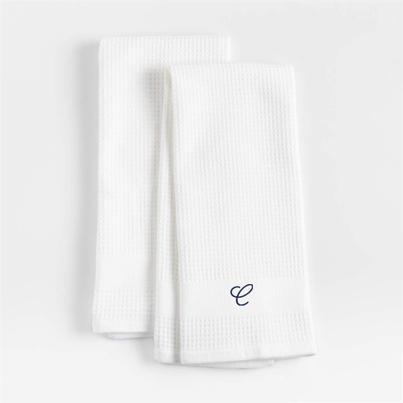 In stock and ready to ship Loading...Crate & BarrelSKU 493386Personalized Waffle-Terry White Organic Cotton Kitchen Towels, Set of 2$37.95includes $15 personalization feeFree Shipping Eligible0 of 1 purchasedAdd to Cart