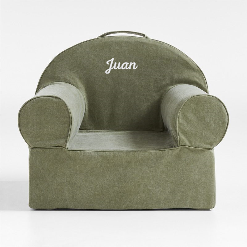 Purchase now and we'll ship when it's available. Estimated in late March 2026.Loading...Crate & KidsSKU 401023Personalized Large Cyprus Green Organic Cotton Kids Lounge Nod Chair$174.00includes $15 personalization feeFree Shipping Eligible0 of 1 purchasedAdd to Cart