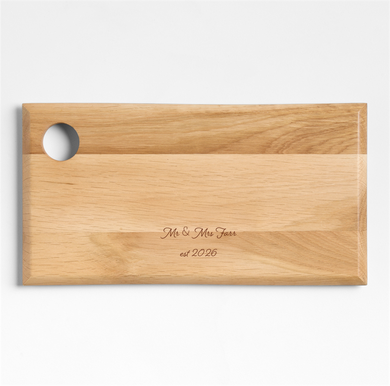 In stock and ready to ship Loading...Crate & BarrelSKU 107376Personalized Madeira Small Oak Wood Serving BoardClearance $38.99 reg. $44.95includes $15 personalization feeShips free0 of 1 purchasedAdd to Cart