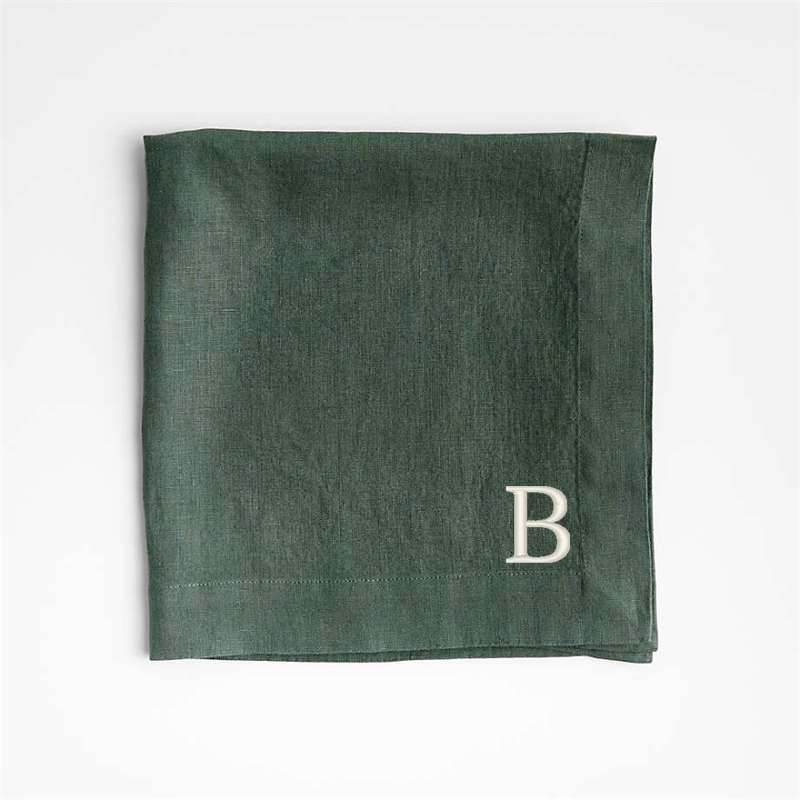 In stock and ready to ship Loading...Crate & BarrelSKU 544333Personalized Marin Pine Green EUROPEAN FLAX ™-Certified Linen Napkin, Set of 8$149.60includes $30 personalization feeShips free0 of 1 purchasedAdd to Cart
