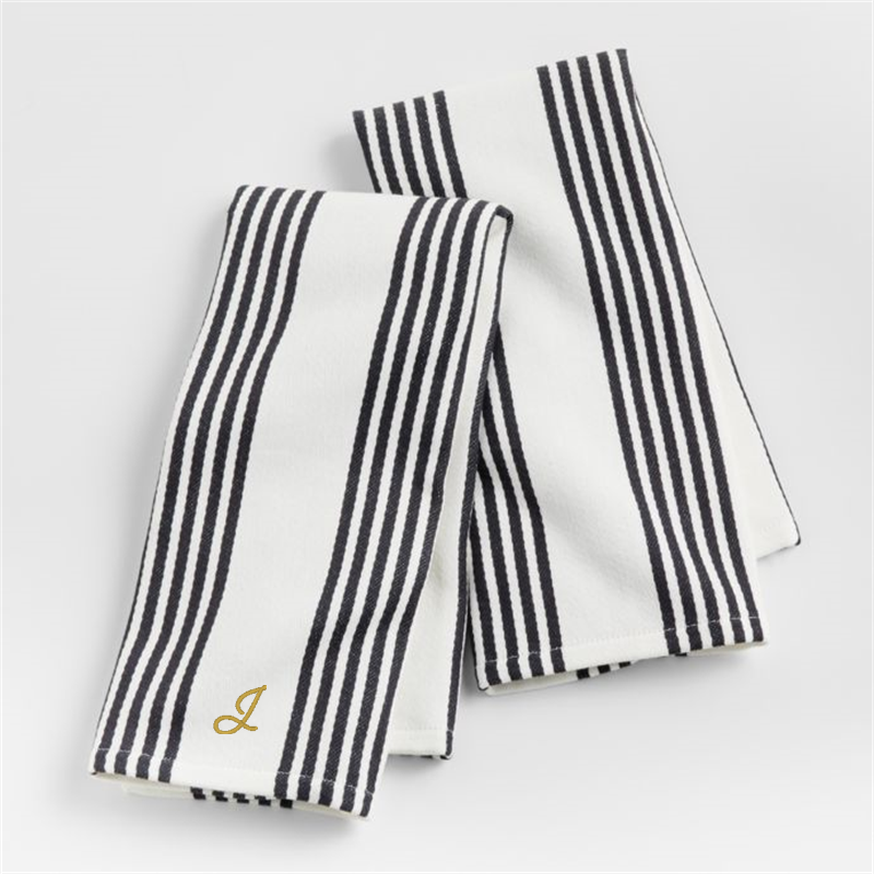 In stock and ready to ship Loading...Crate & BarrelSKU 464002Personalized Cuisine White with Black Stripe Organic Cotton Dish Towels, Set of 2$37.95includes $15 personalization feeFree Shipping Eligible0 of 4 purchasedAdd to Cart