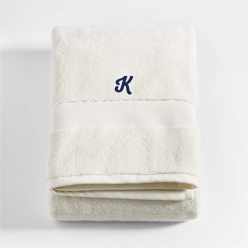 In stock and ready to ship Loading...Crate & BarrelSKU 586851Personalized Organic Turkish Cotton Ivory Bath Towel$49.95includes $15 personalization feeShips free0 of 6 purchasedAdd to Cart