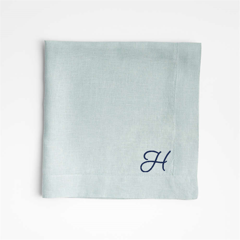 In stock and ready to ship Loading...Crate & BarrelSKU 544408Personalized Marin Quiet Blue EUROPEAN FLAX ™-Certified Linen Napkin, Set of 8$149.60includes $30 personalization feeShips free0 of 1 purchasedAdd to Cart