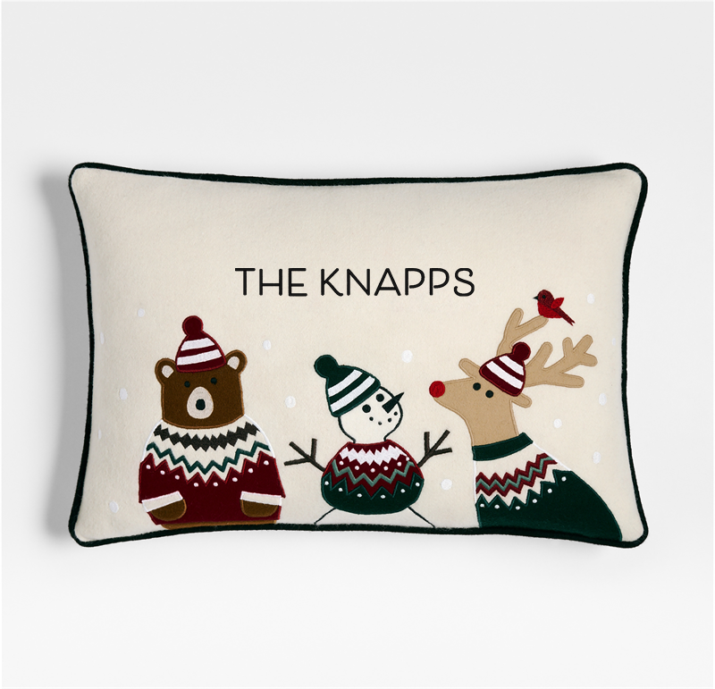 In stock and ready to ship Loading...Crate & BarrelSKU 332366Personalized Fair Isle Friends 24"x16" Ivory Throw Pillow by Joan Anderson with Feather Insert$99.95includes $15 personalization feeShips free0 of 1 purchasedAdd to Cart