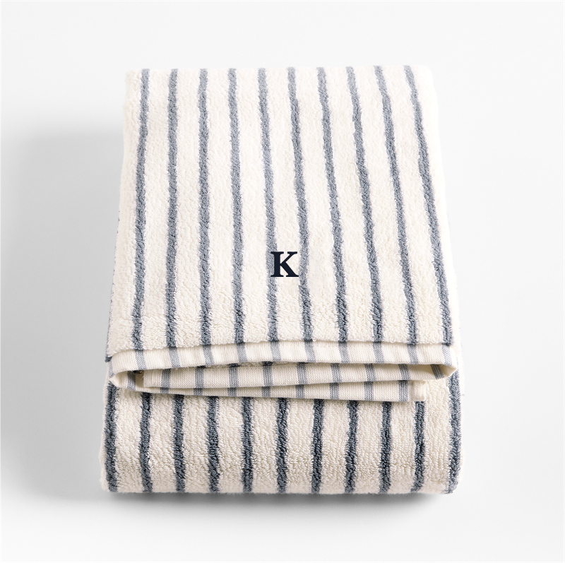 In stock and ready to ship. Loading...Crate & BarrelSKU 626989Personalized Organic Turkish Cotton Pampas Ivory and Evening Blue Stripe Bath Towel$59.95includes $15 personalization feeShips free0 of 4 purchasedAdd to Cart
