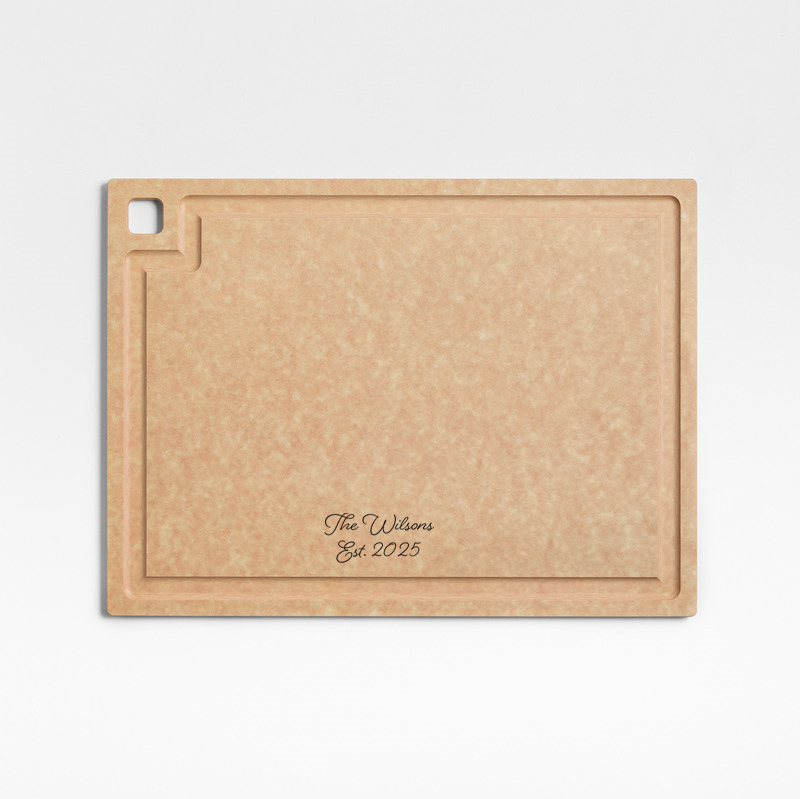 In stock and ready to ship Loading...Crate & BarrelSKU 265264Personalized Epicurean ® Gourmet Modern Natural Paper Composite Cutting Board 17.5"x13"$89.95includes $15 personalization feeFree Shipping Eligible0 of 1 purchasedAdd to Cart